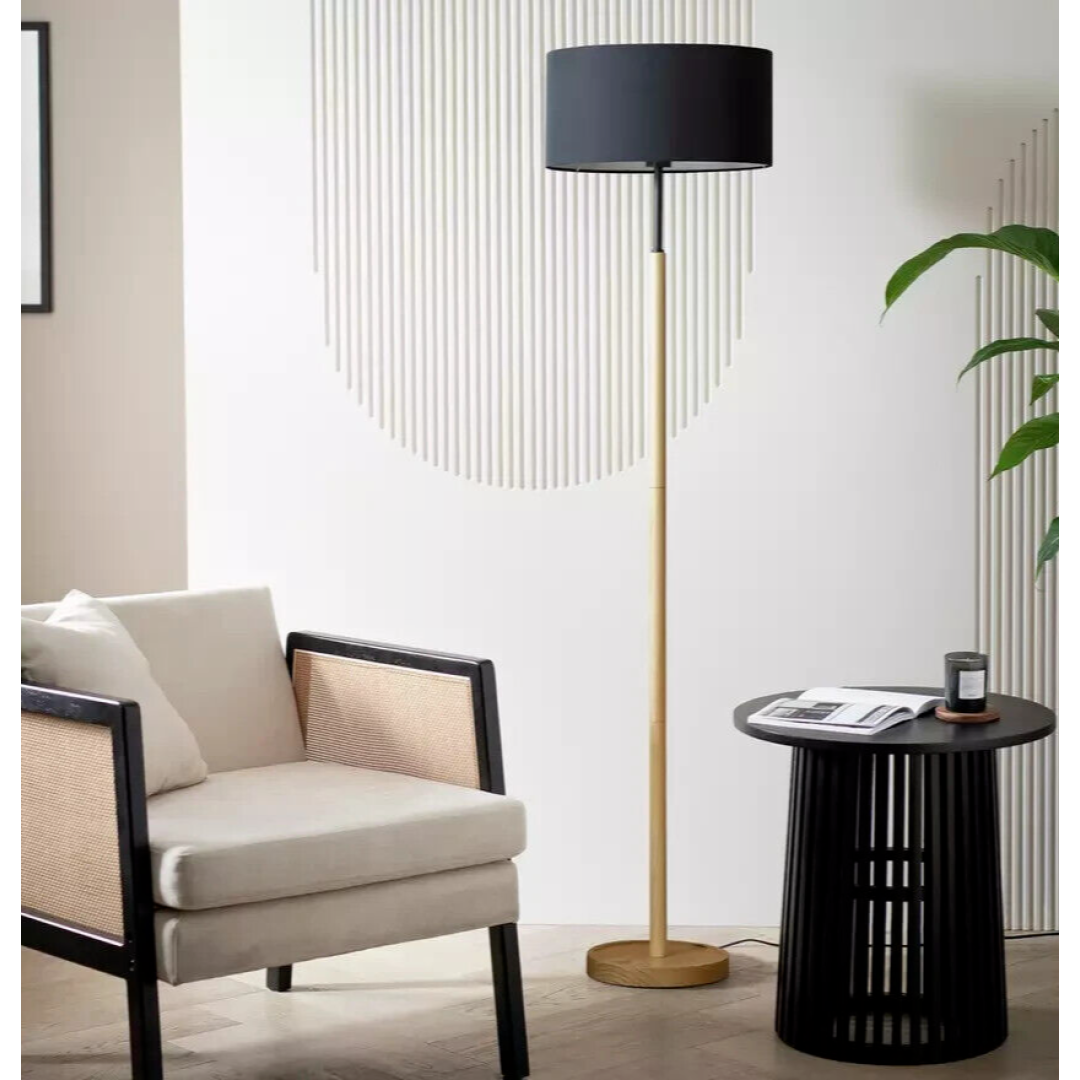 Shine a light. With its minimalist sensibilities, our floor lamp is naturally handsome through and through. Crafted from pine with a contrasting grey fabric shade. And an inline switch for easy on, easy off.