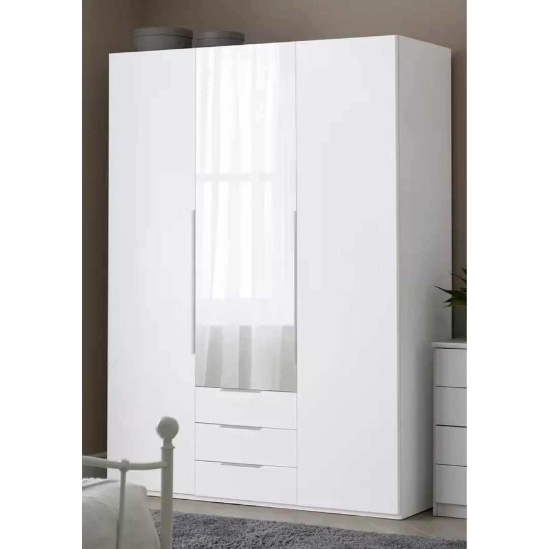 Hallingford 3 Door 3 Drawer Wardrobe-White Gloss (B GRADE)