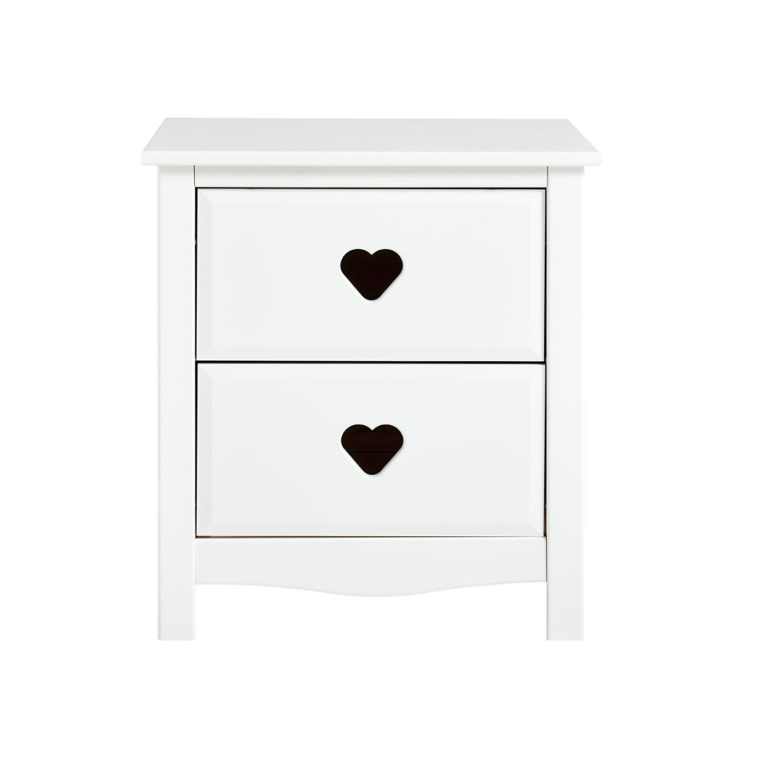Made of solid pine and MDF and featuring playful cut-out heart handles and decorative bevelled edges, the Mia bedside chest makes a charming addition to your little one's bedroom. Featuring 2 deep drawers fitted with easy-glide metal runners, it's ideal for storing bedtime essentials. Kitting out the whole room? Check out the rest of the Mia bedroom furniture collection which also includes a variety of bed options. Plus, we've got some great money-saving sets too, designed to give you the whole bedroom furniture package in one easy hit.