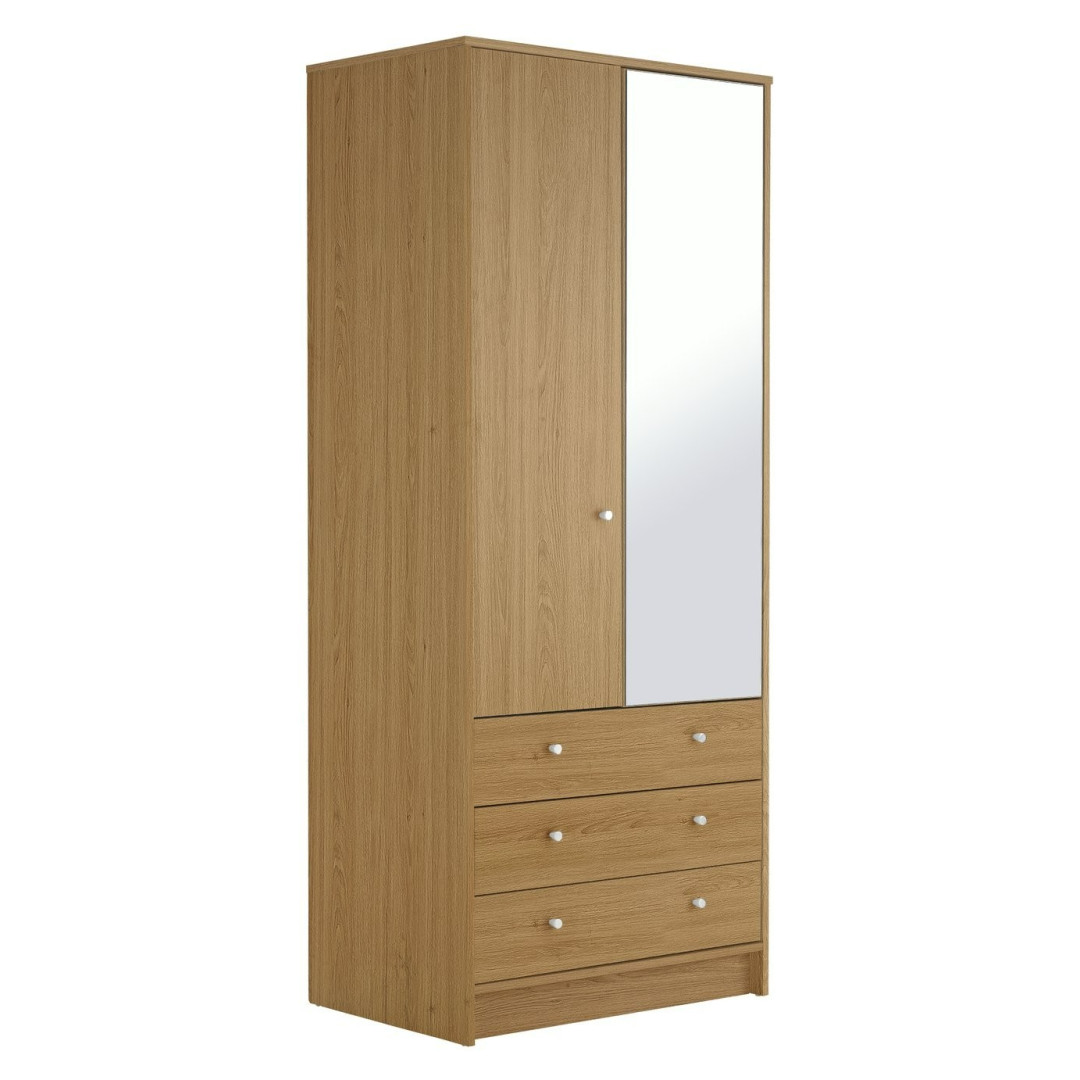 Home Malibu 2 Door 3 Drawer Wardrobe - Oak Effect | Warm Wood Aesthetic