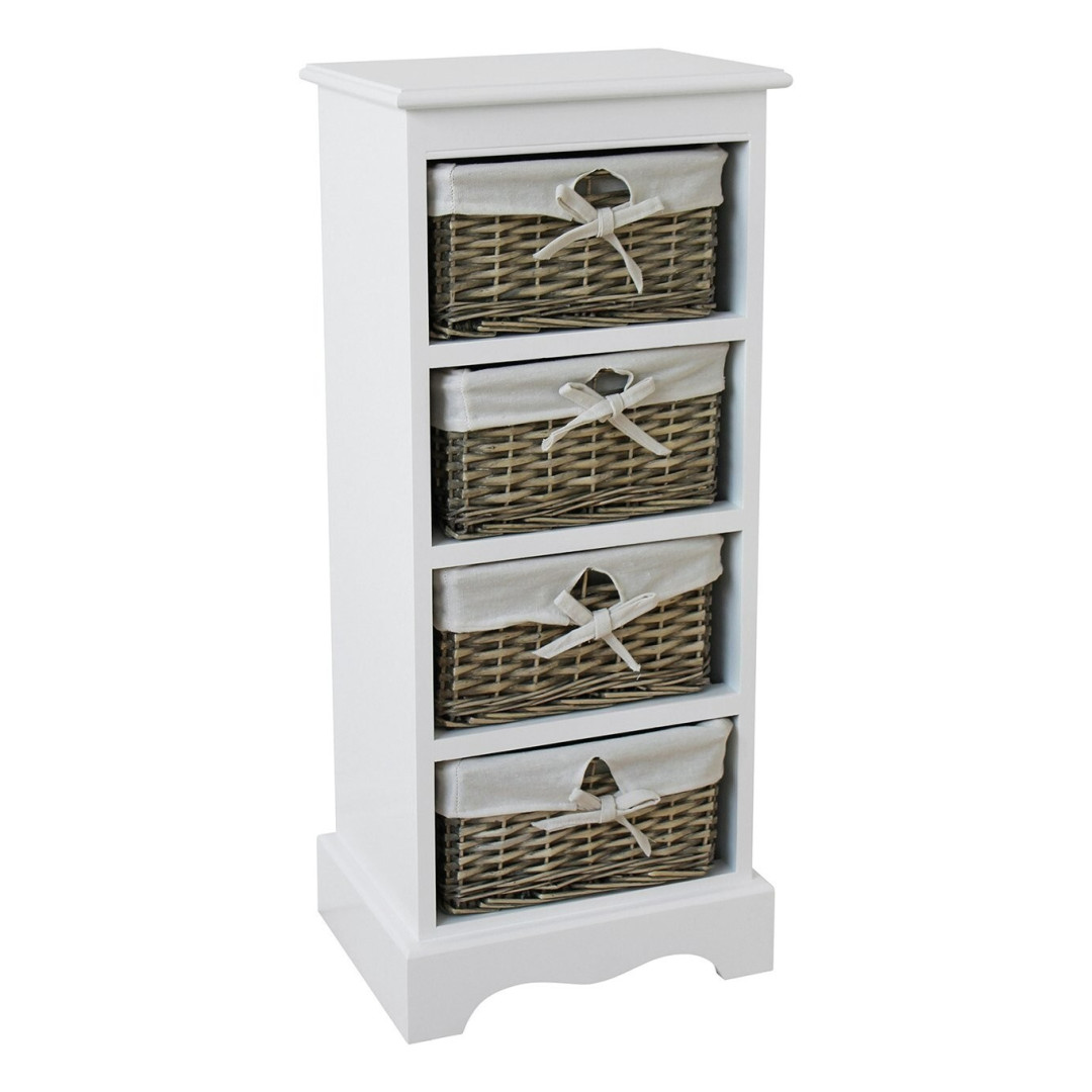 The Malvern collection combines a fresh white finish with chic wicker drawers for contemporary styling. This four drawer unit is perfect for keeping household clutter stored away and out of sight. Each drawer offers ample space and has a neutral coloured canvas lining. Perfect for adding stylish appeal, and function, to your hallway.