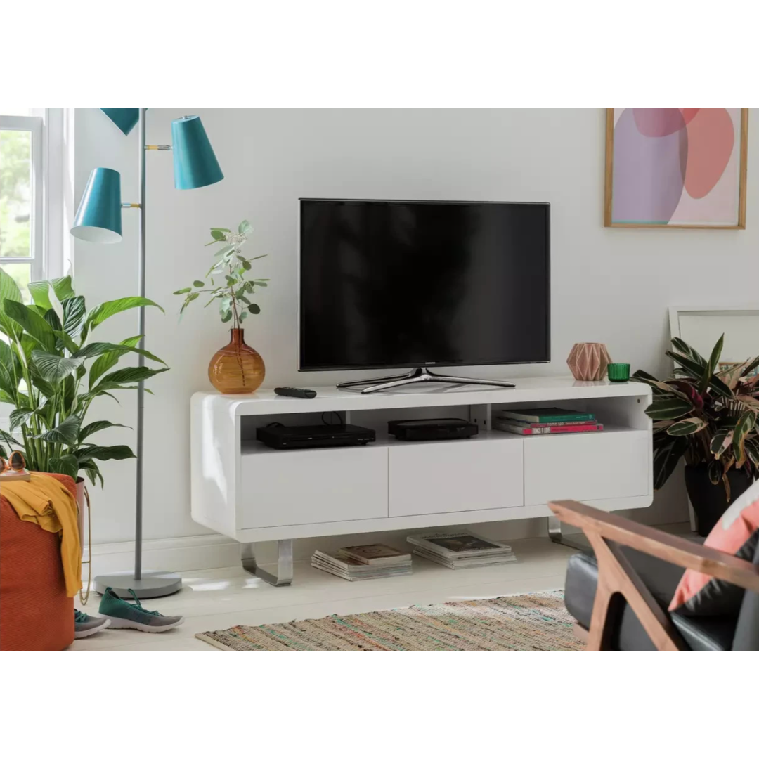Home Sleigh 2 Door 1 Drawer TV Unit - White Gloss ( B Grade )