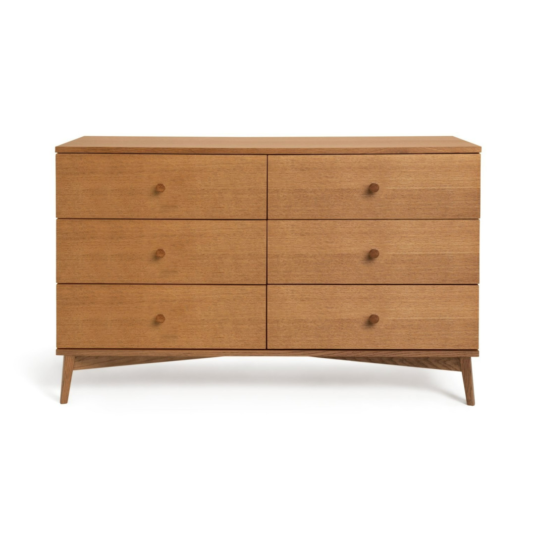 Deciding on decluttering? Our Kirk 6 drawer walnut cabinet is here to help. Round wooden handles add a classic touch, while splayed legs elevate the look and bring an air of spaciousness. Set on metal runners, each of the drawers glide open to reveal plenty of room for clothes, linen and more. A handsome addition to a bedroom or lounge.
